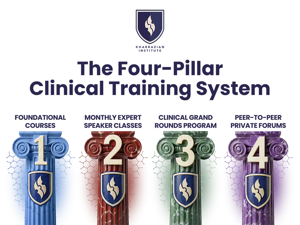 The Kharrazian Institute’s educational platform is built on four integrated pillars designed to develop practitioners’ unparalleled, real-life clinical skills in functional medicine.